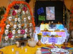 After ten days here, we hardly felt ready for the the Day of the Dead holiday last Friday, November 2. Banks, most offices and many stores were closed except for those serving last minute shoppers. The adornment of graves, and the creation of home and work place altars makes for big business here; one local newspaper, there are at least four, estimated the average family in San Luis Potosi spends around $30 to honor their deceased. We learned that “El Dia de los Muertos” is the leading Mexican holiday. Other Latin cultures mark All Saints Day November 1 but none with the zeal of the Mexican people.