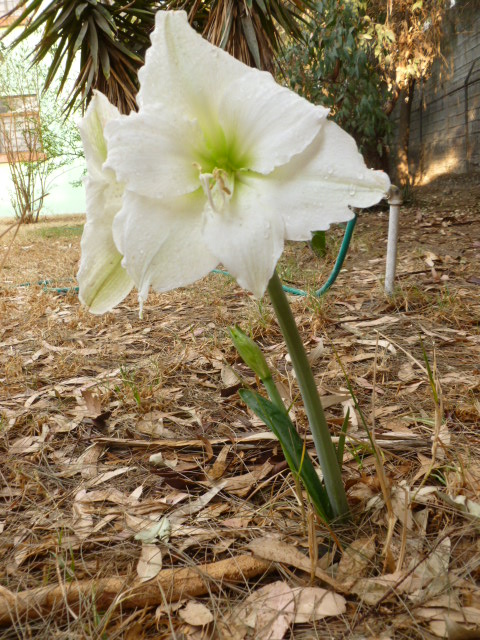 This amaryllis bloom, our first white ones, surprised us at home on our return