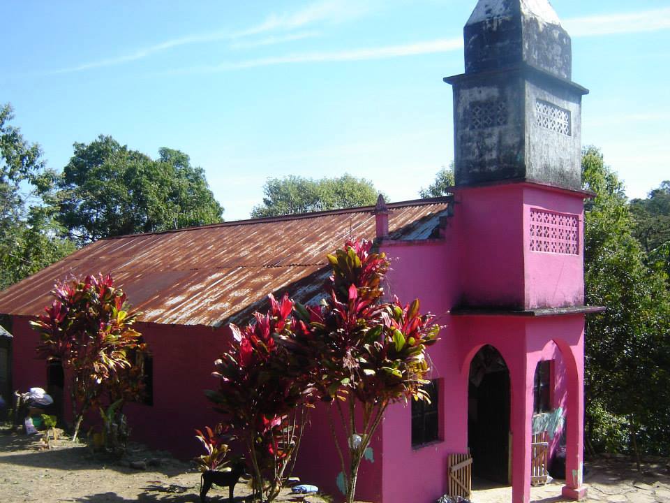 The freshly painted La Joya Church in the hills above Xilitla in the Sierra Huasteca