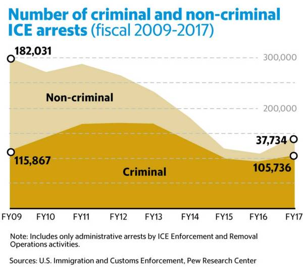 Contradicting its own statistics, ICE’s Enforcement and Removal Office (ERO) continues to claim that the focus is on deportation of criminals. A March 20, 2018 press release from its Chicago office was headlined,