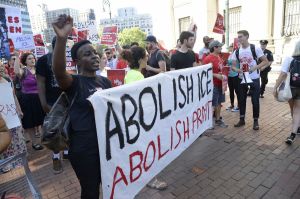 Rise and Resist activists called for abolition of ICE at the December court hearing. Photo by NYDailyNews