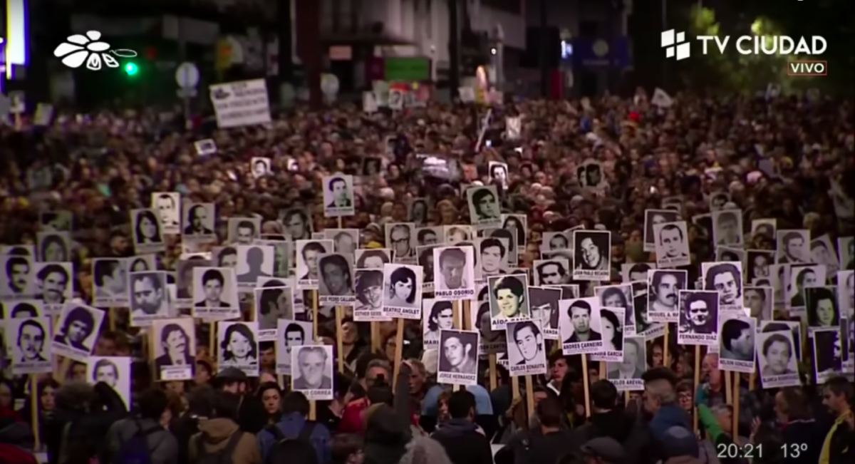On May 20 for the past 28 years thousands have marched in 77 places across Uruguary and abroad in remembrance of those disappeared and detained by the military dictatorship from 1973 to 1985. Marchers call silently for “State terrorism never again”.