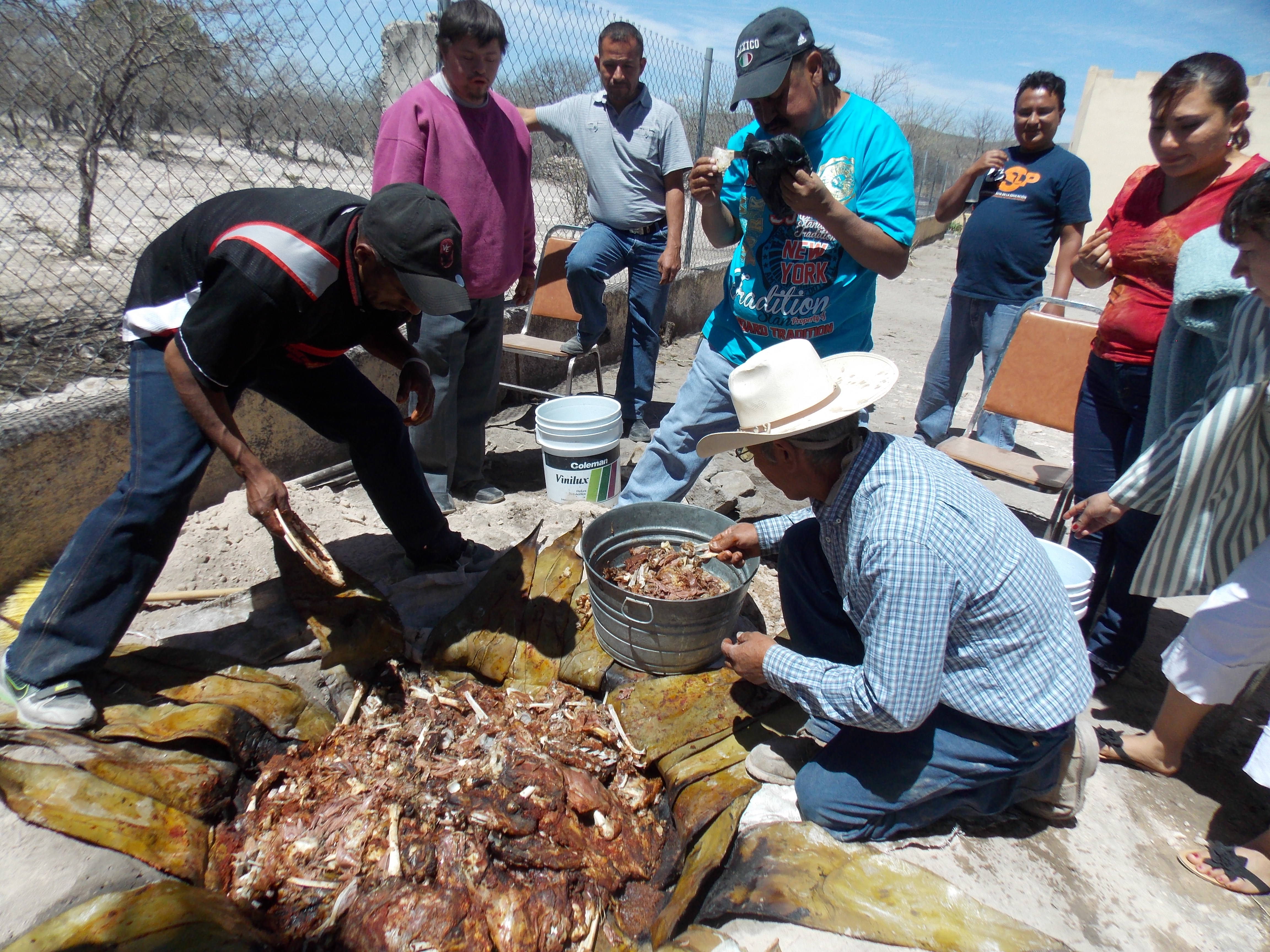 Barbacoa, meat falls off the bone after cooking for just over 24 hours/Barbacoa de borrego que se cae facilmente del hueso despues de 24 horas bajo del suelo
