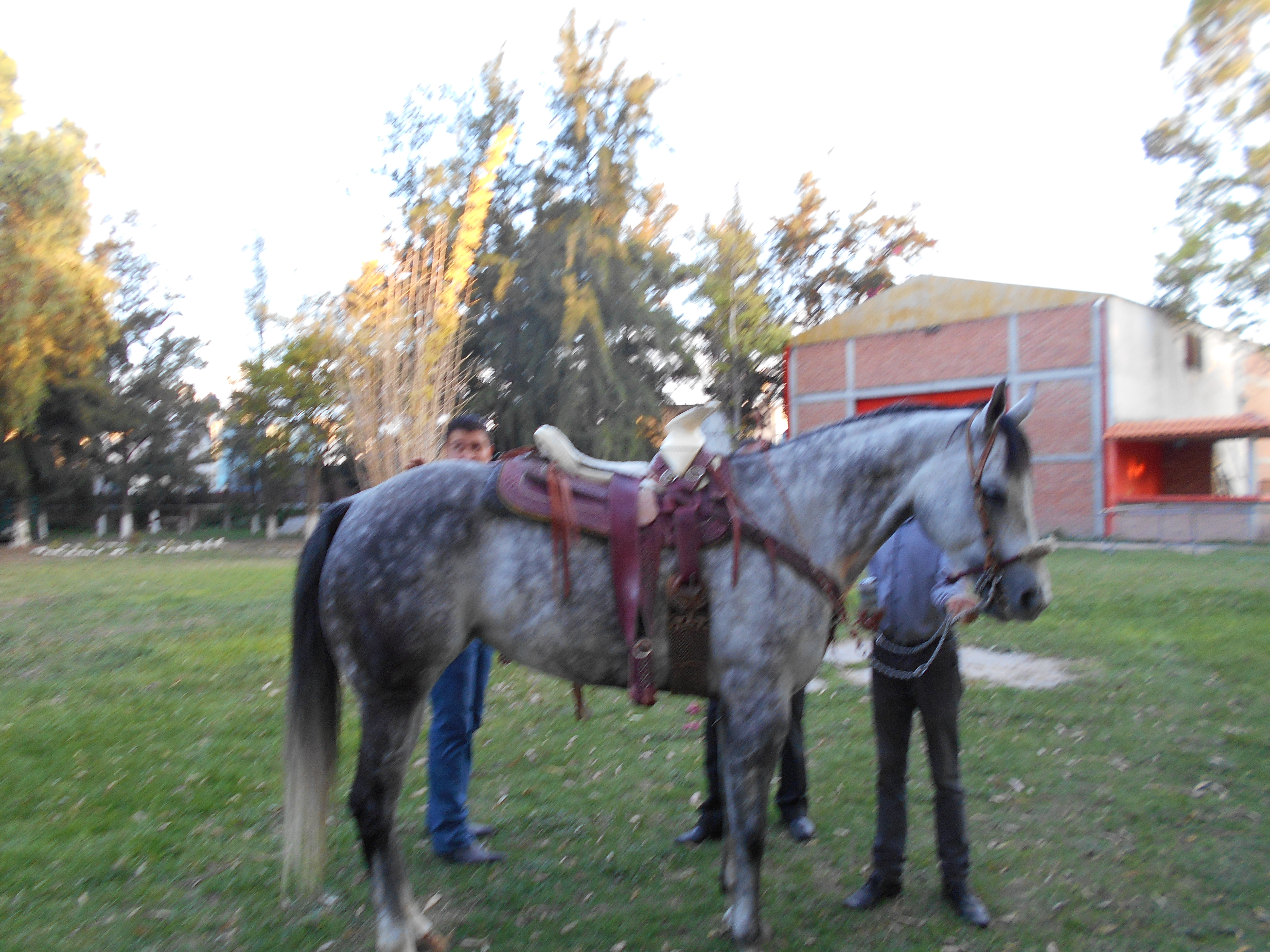 Paloma ready to take Juan Jose’s work buddies for a ride./ Paloma se prepara para que monten los compañeros del trabajo de Juan José
