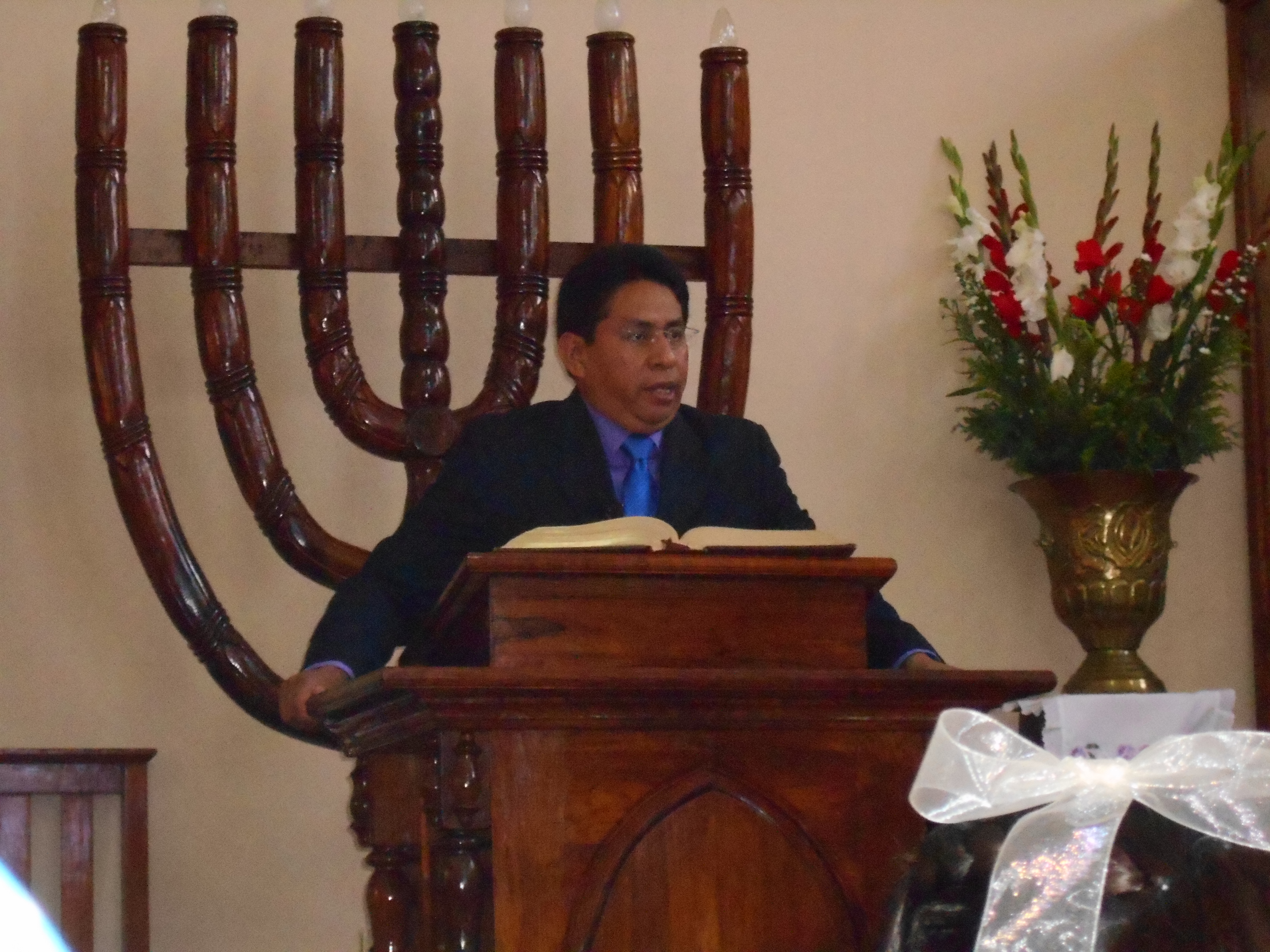 Pastor Saúl Zambrano preside en la celebración de la Iglesia Congregacionale en Autlan, Jalisco/ Rev. Saúl Zambrano presides at the Table in the Congregational Church of Autlan, Jalisco