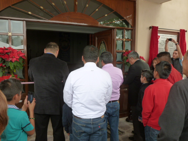 Se reveló la placa de dedicación antes de entrar en el nuevo templo./Dedication plaque for the new sanctuary