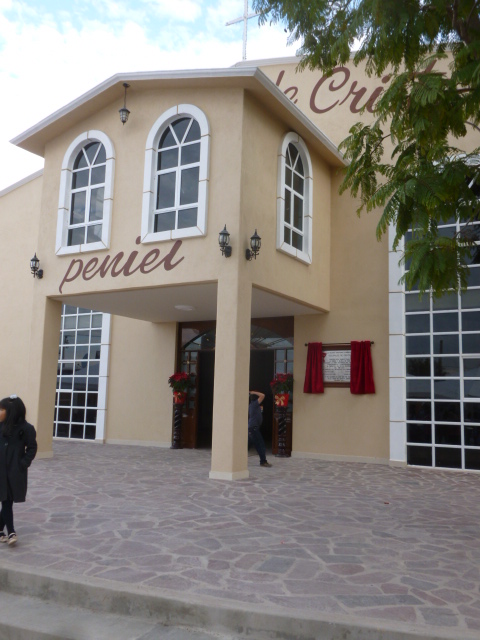 pesos (aproximadamente 4,000$ dólares US) y un préstamo fue asegurado. Terminar el balcón y escaleras, poner un piso de baldosa hermoso, instalar ventanas altísimas, el patio con bautisterio y otros últimos toques, tomó otro año. El nuevo santuario, llamado Peniel (“Rostro de Dios” en hebreo), fue dedicado el 20 de diciembre de 2014, a tan solo una semana del segundo aniversario del colapso del antiguo templo.