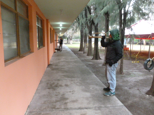 Morning reveille at 8 even on the last day of Camp